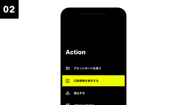 「Action」画面にある「口座情報を表示する」をタップしてください。
